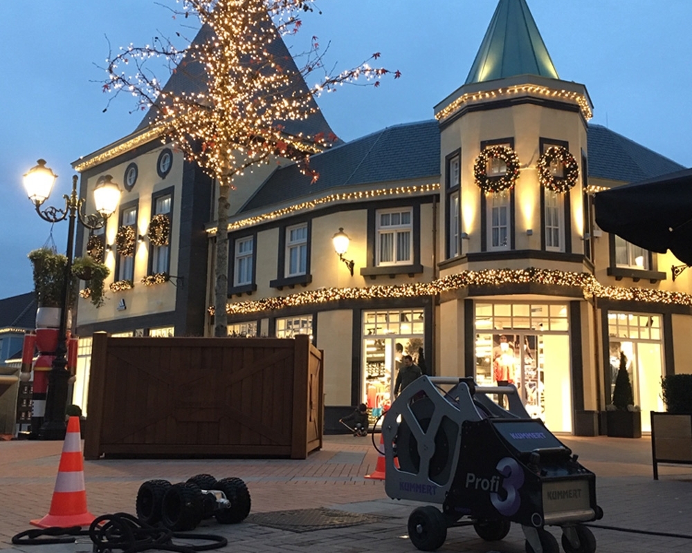 Voor het plaatsen van de bijna 30 meter hoge kerstboom diende McArthurGlen een solide fundament te bouwen. Daarvoor moest éérst de bestaande riolering exact in kaart worden gebracht. Subnet is hiervoor ingeschakeld en heeft met zijn hightech rijdende camera door het riool gereden. Bovengronds kon deze met een ‘tracer’ tot op de centimeter nauwkeurig worden gevolgd. Zo kon de precieze locatie worden bepaald voor het fundament van de kerstboom. Zonder schade aan het rioolstelsel.